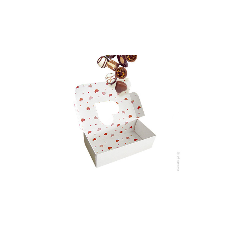 Caixa em cartolina branca com janela em acetato de qualidade alimentar com bandeja interior para 6 brigadeiros.