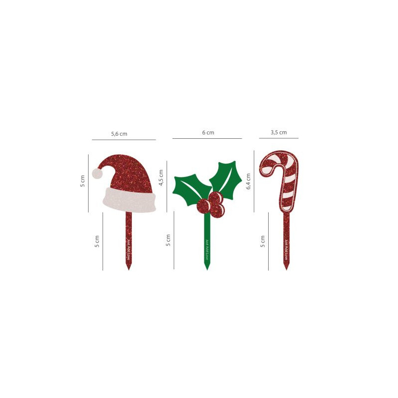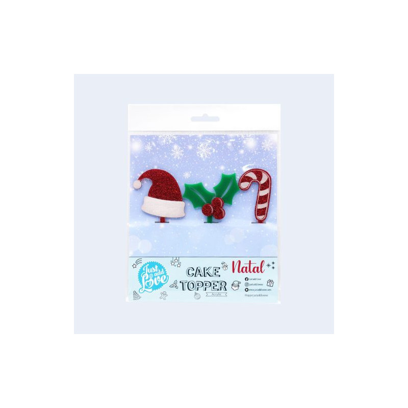 Topper de acrílico com espessura de 3mm, ideal para decoração de bolo rei, tronco de natal, cupcakes, bolos, sobremesas e outras especialidades de Natal.