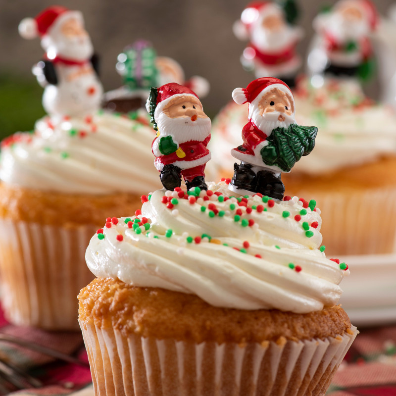Topper de acrílico com espessura de 3mm, ideal para decoração de bolo rei, tronco de natal, cupcakes, bolos, sobremesas e outras especialidades de Natal.